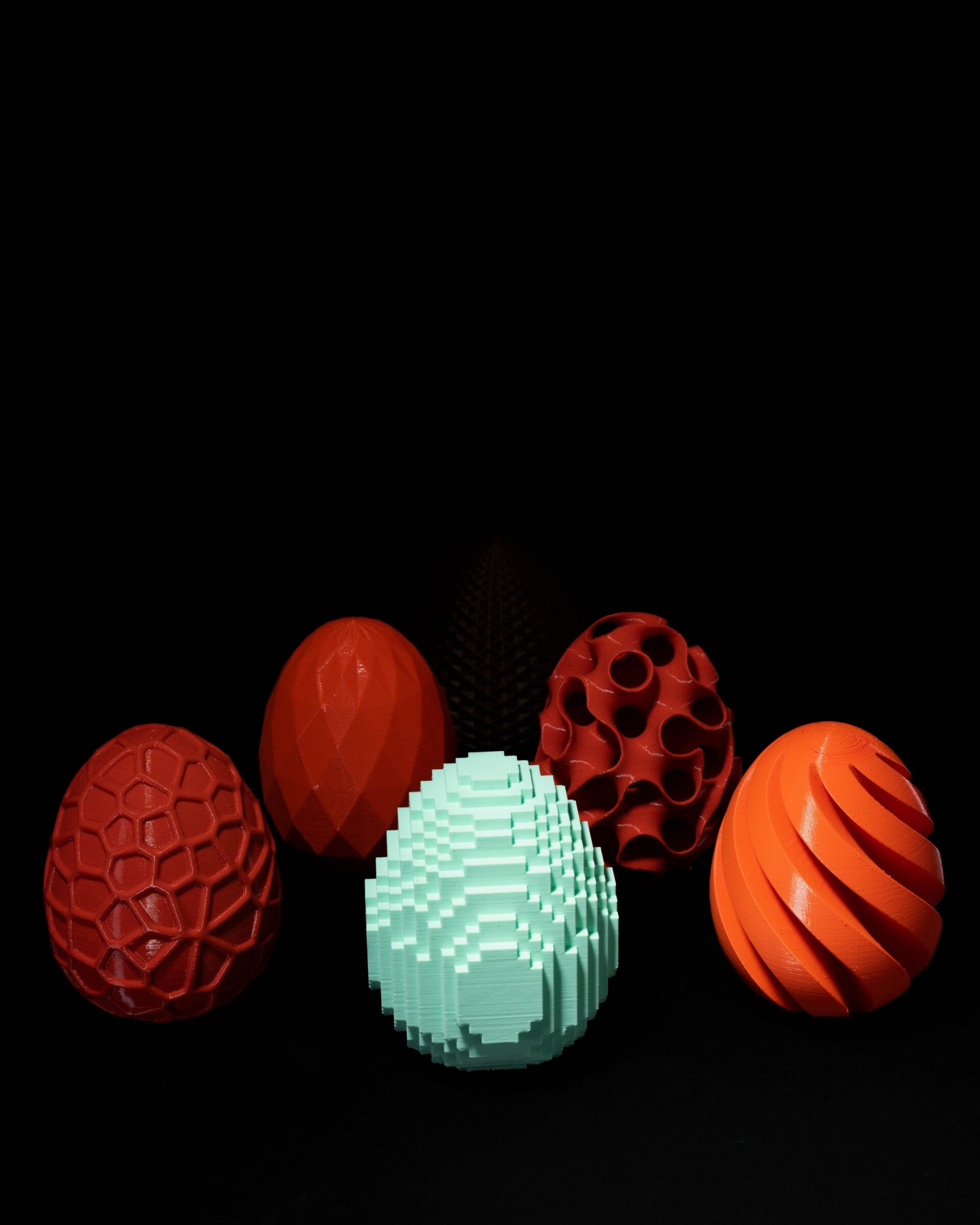 Here are 6 awesome home decor 3D printed eggs in 6 different styles: Gyroid, Pixel, Triangle, Twisted, Voronoi, and Low-poly!
